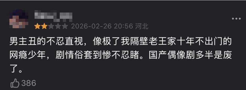 观众集中吐槽剧中的一位主角,说他一颗老鼠屎毁了一锅粥。